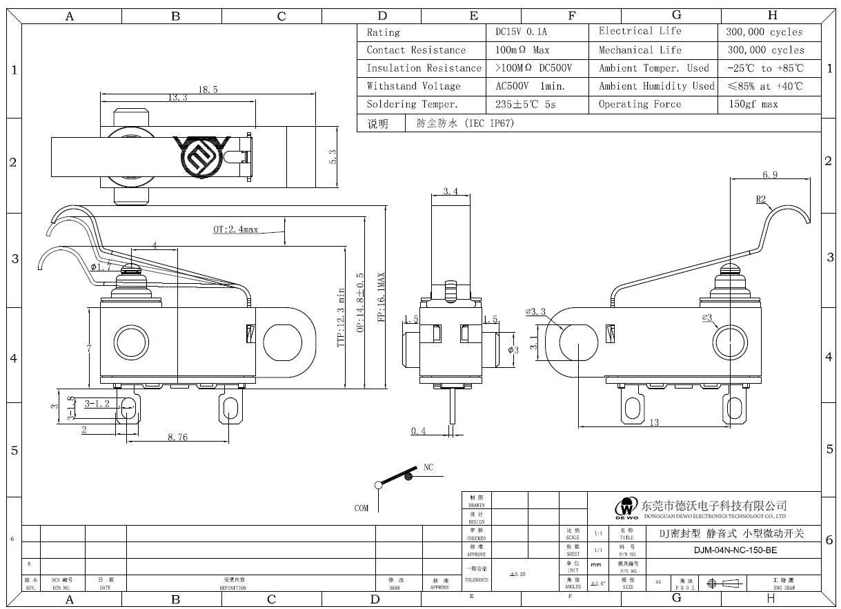 DV-16-A00-NN1-200E型微動開關