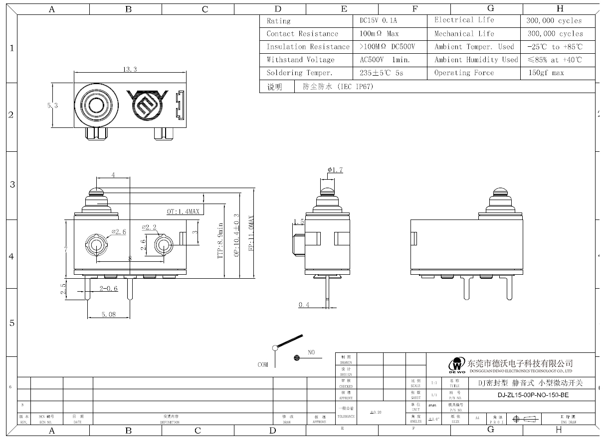 DV-16-A00-NN1-200E型微動開關