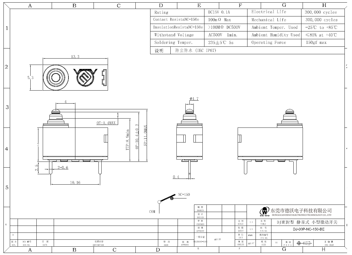 DV-16-A00-NN1-200E型微動開關