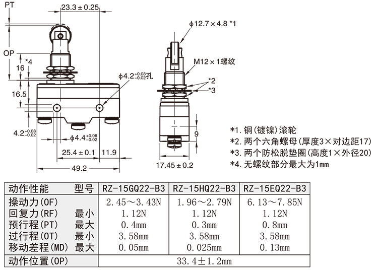 開關操動迅捷,精度高,重複動作誤差極小。(以RZ-15G型號為例時)