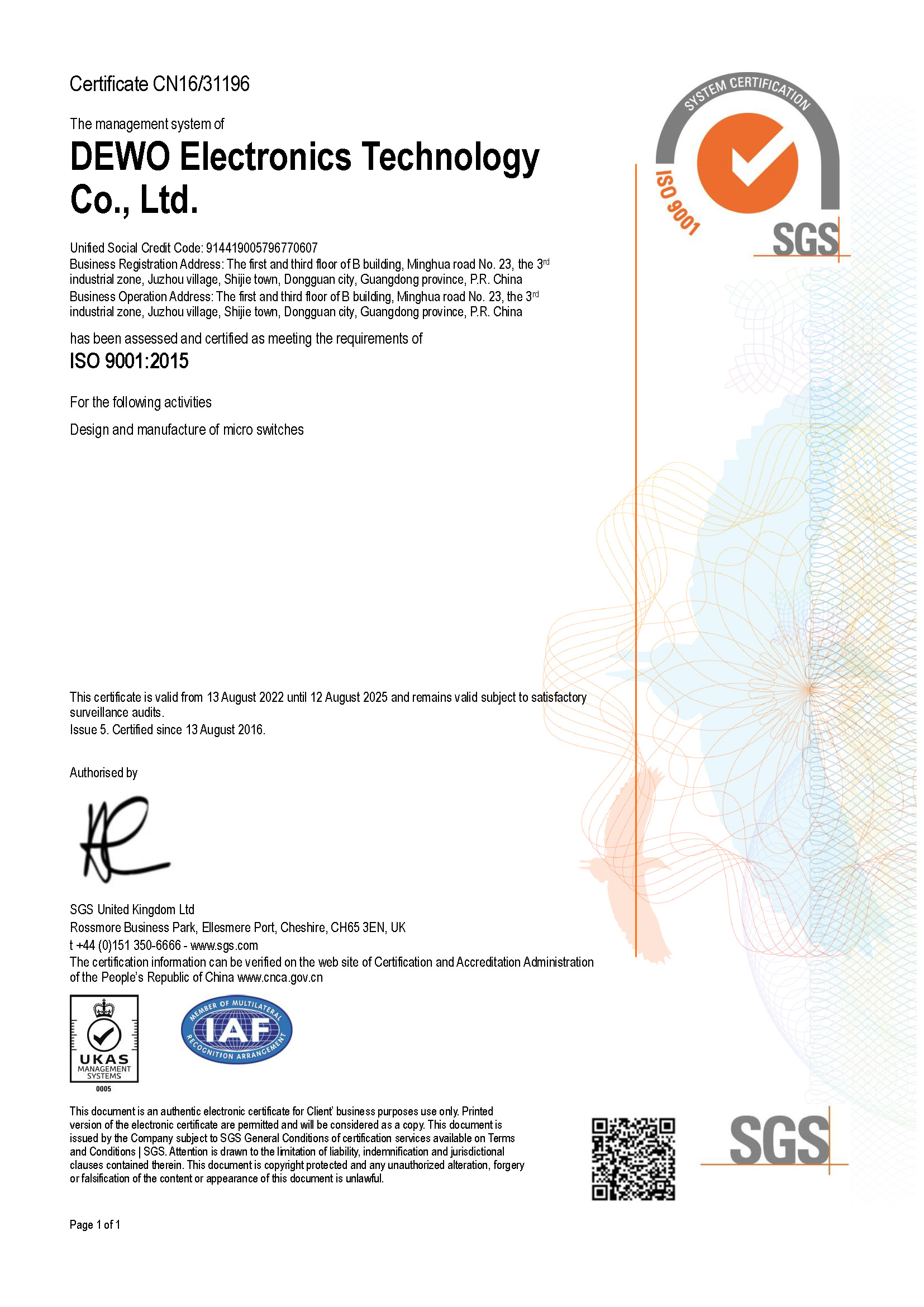 Dongguan Dewo Electronics Technology Co., Ltd