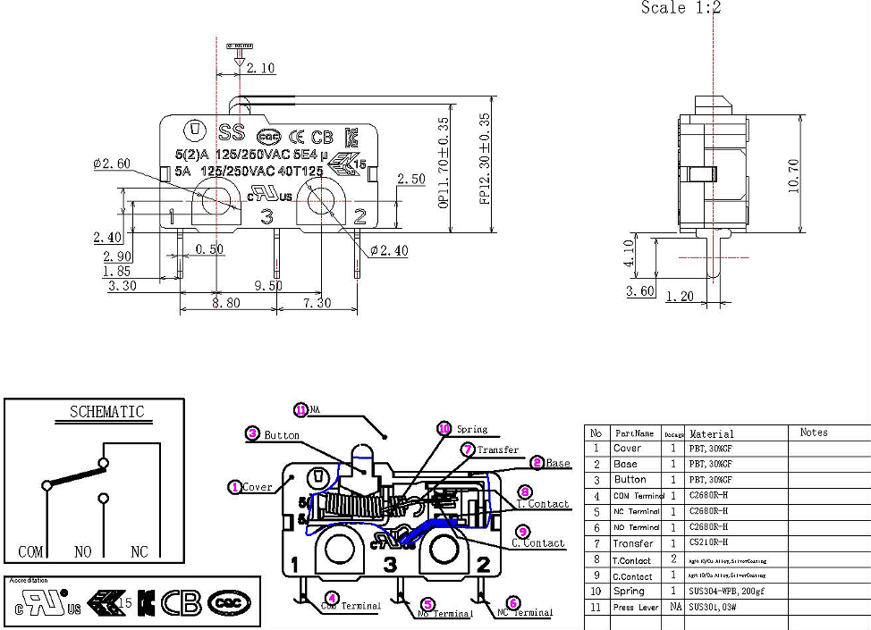 Function: SPDT/SPST-NO/SPST/NC