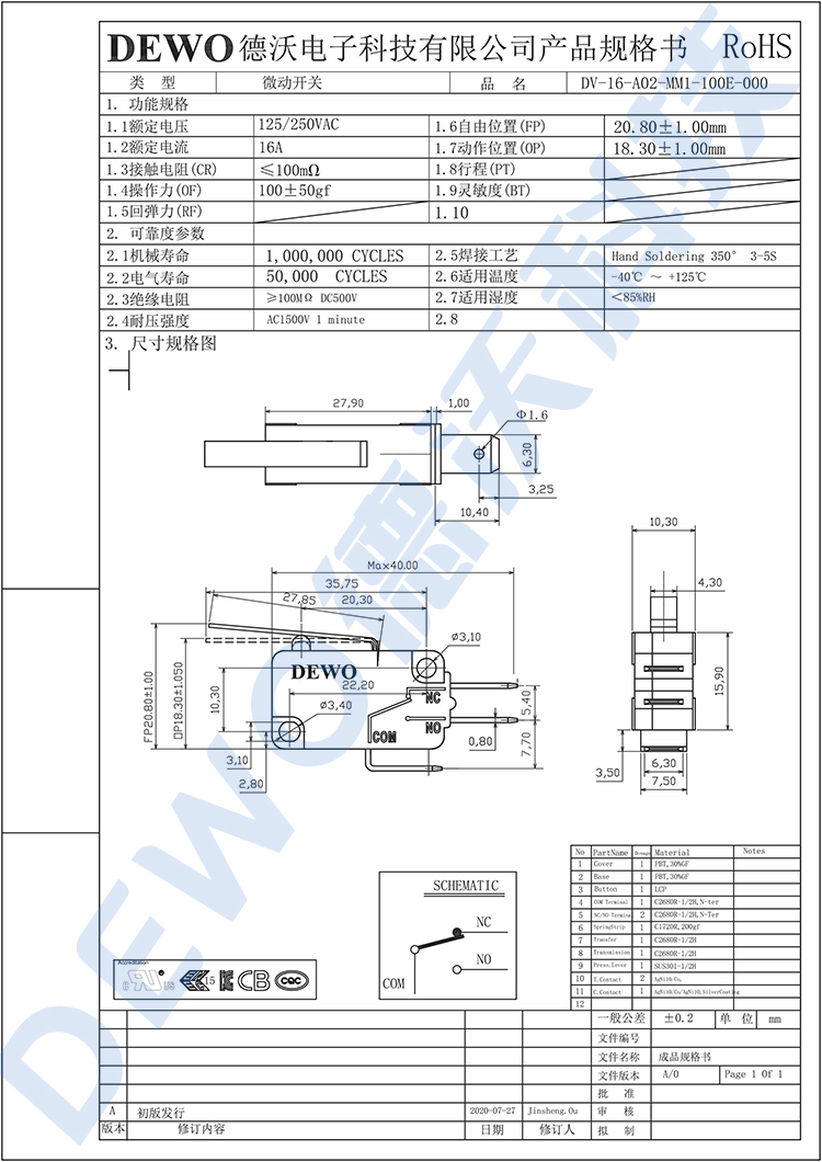 DV-16-A02-MM1-100E微動開關