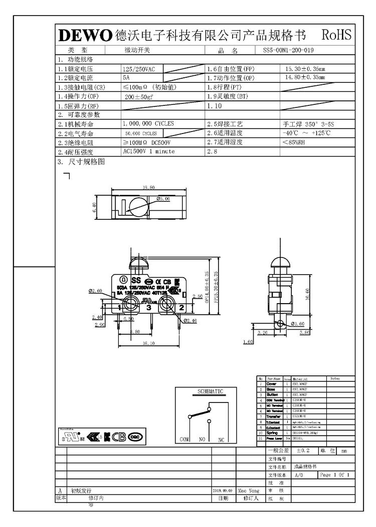 DV型微動開關
