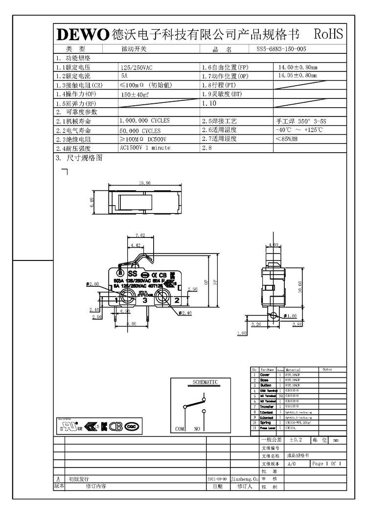 DV型微動開關