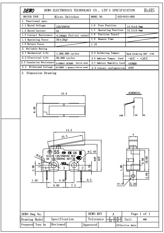 DV型微動開關