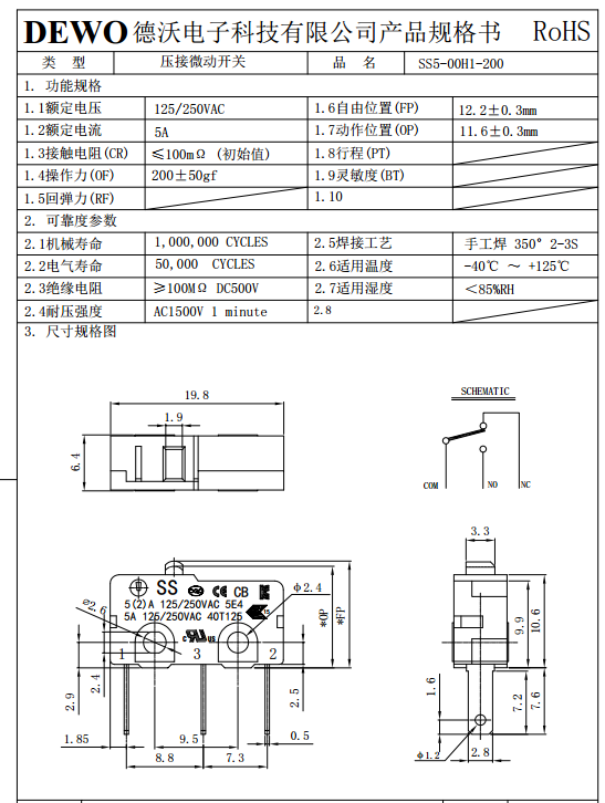 SS5-00D1-200微動開關
