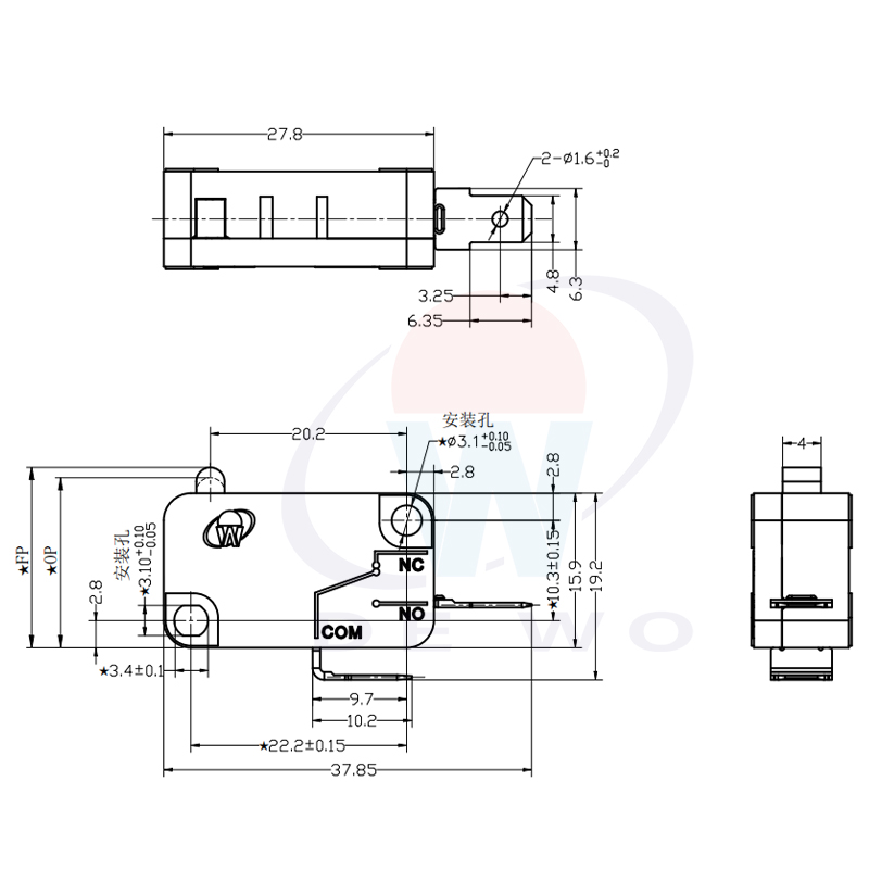 自由位置(FP):18.5±0.50mm