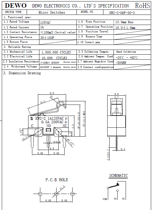 KW2-3-06P-30-5小型微動開關