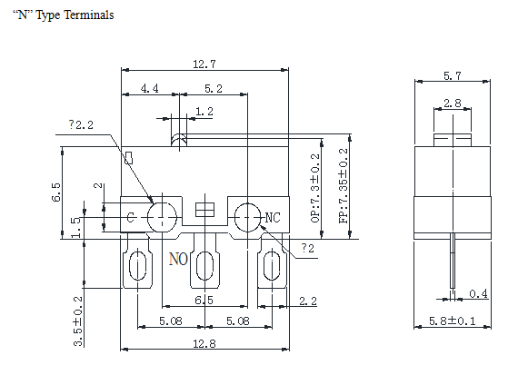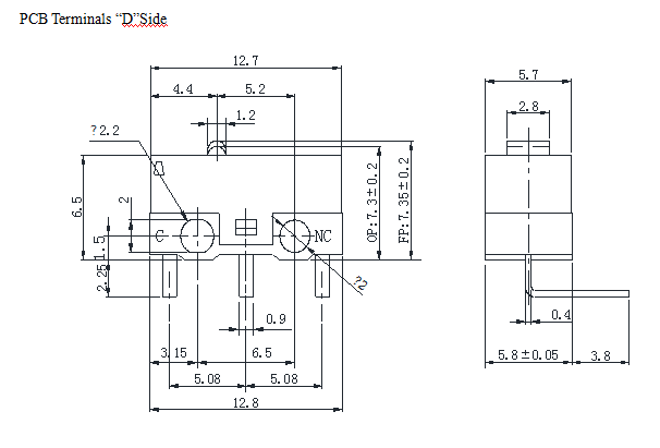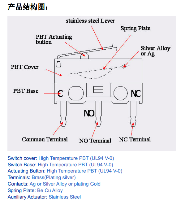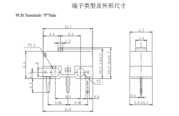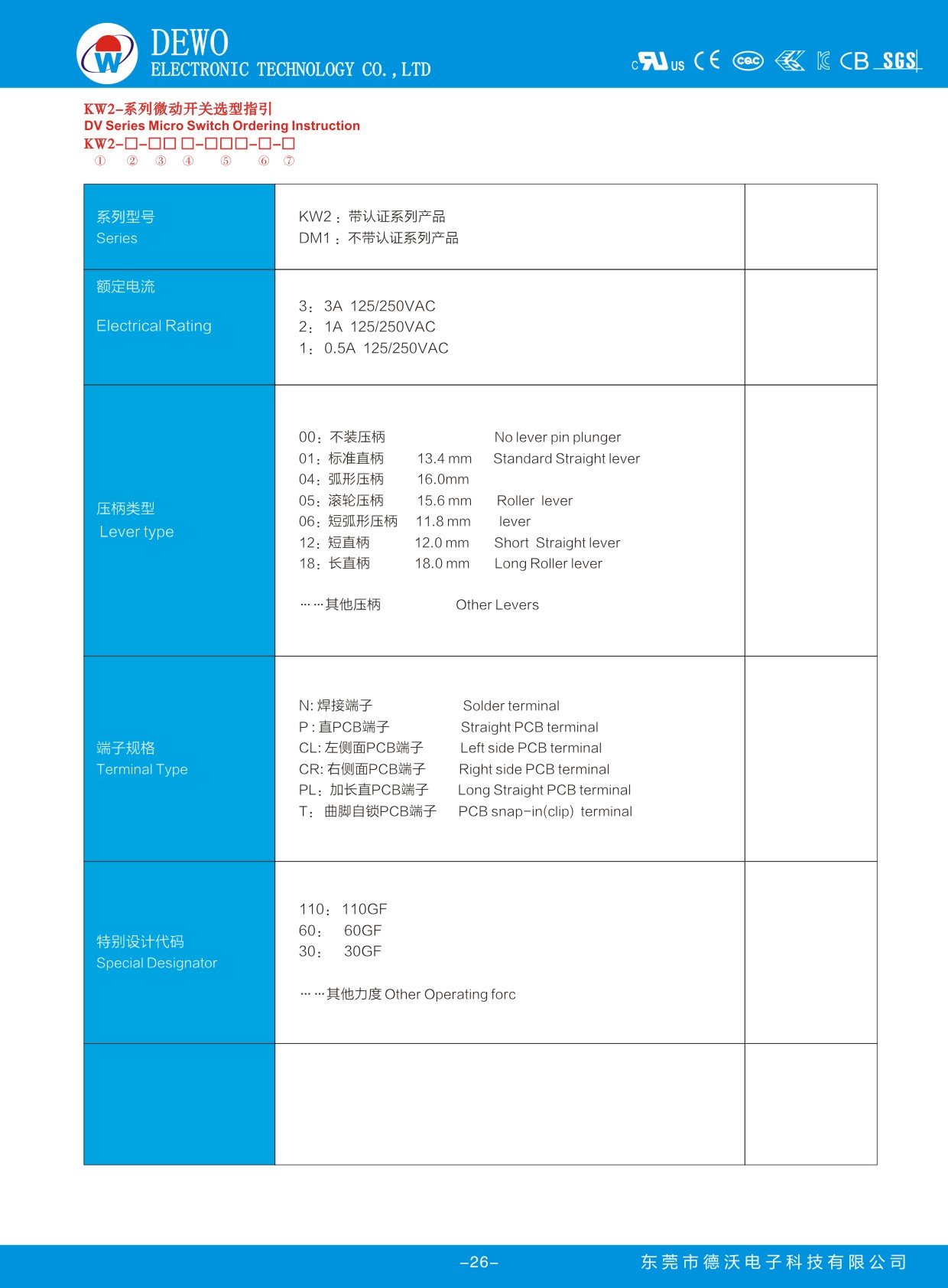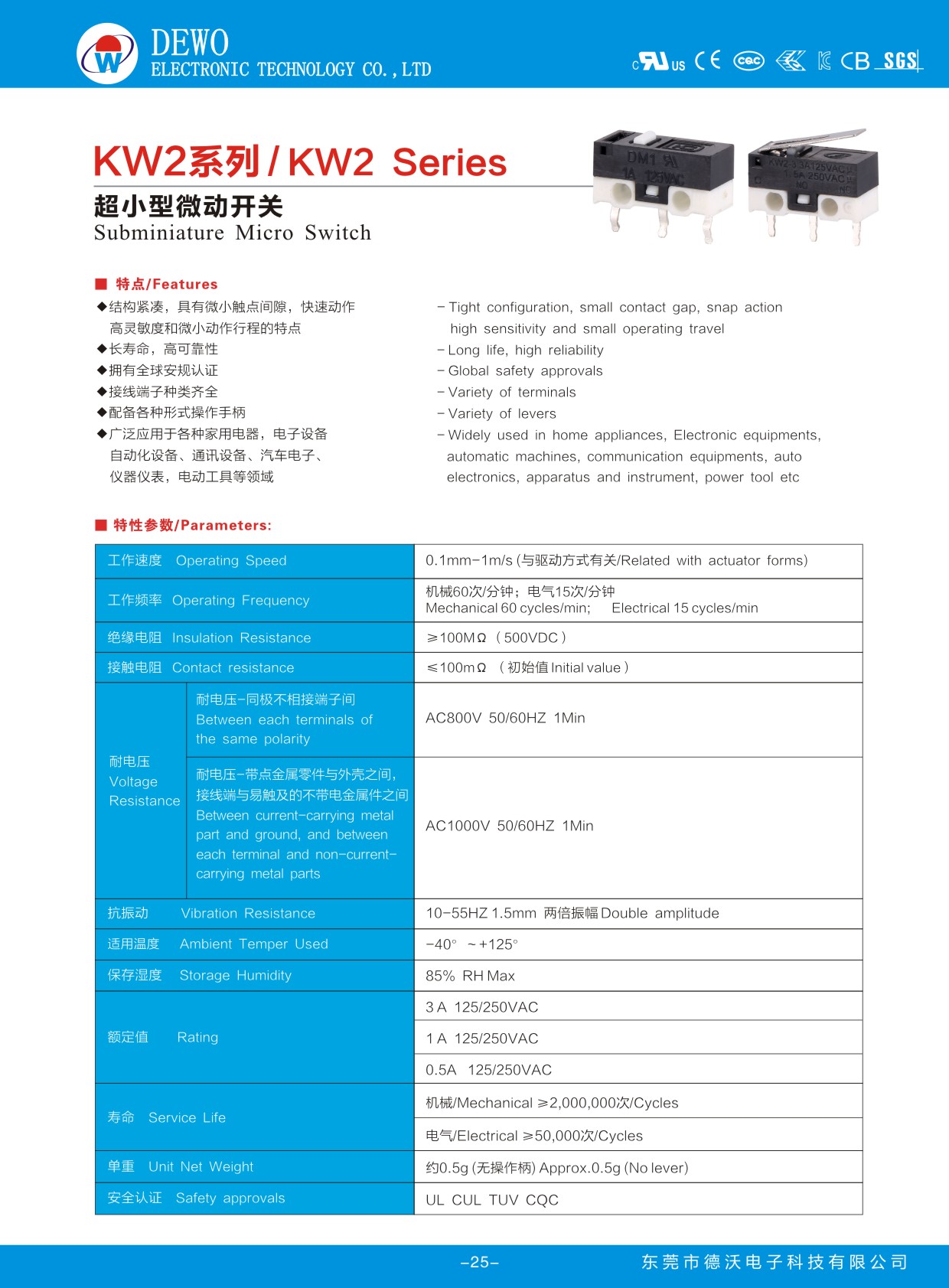 KW2-3-00CL-110-5小型微動開關側彎端子