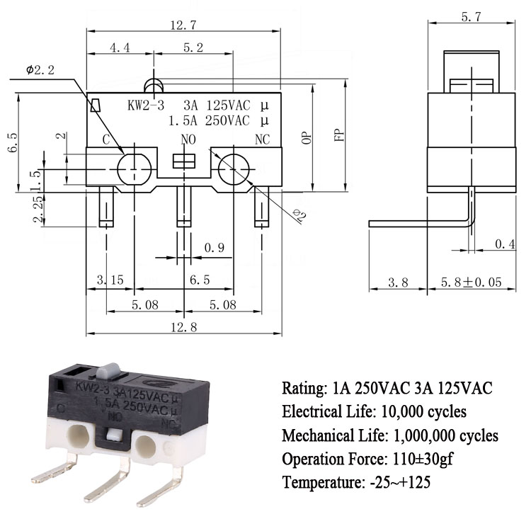 KW2-3-00P-110-5小型微動開關