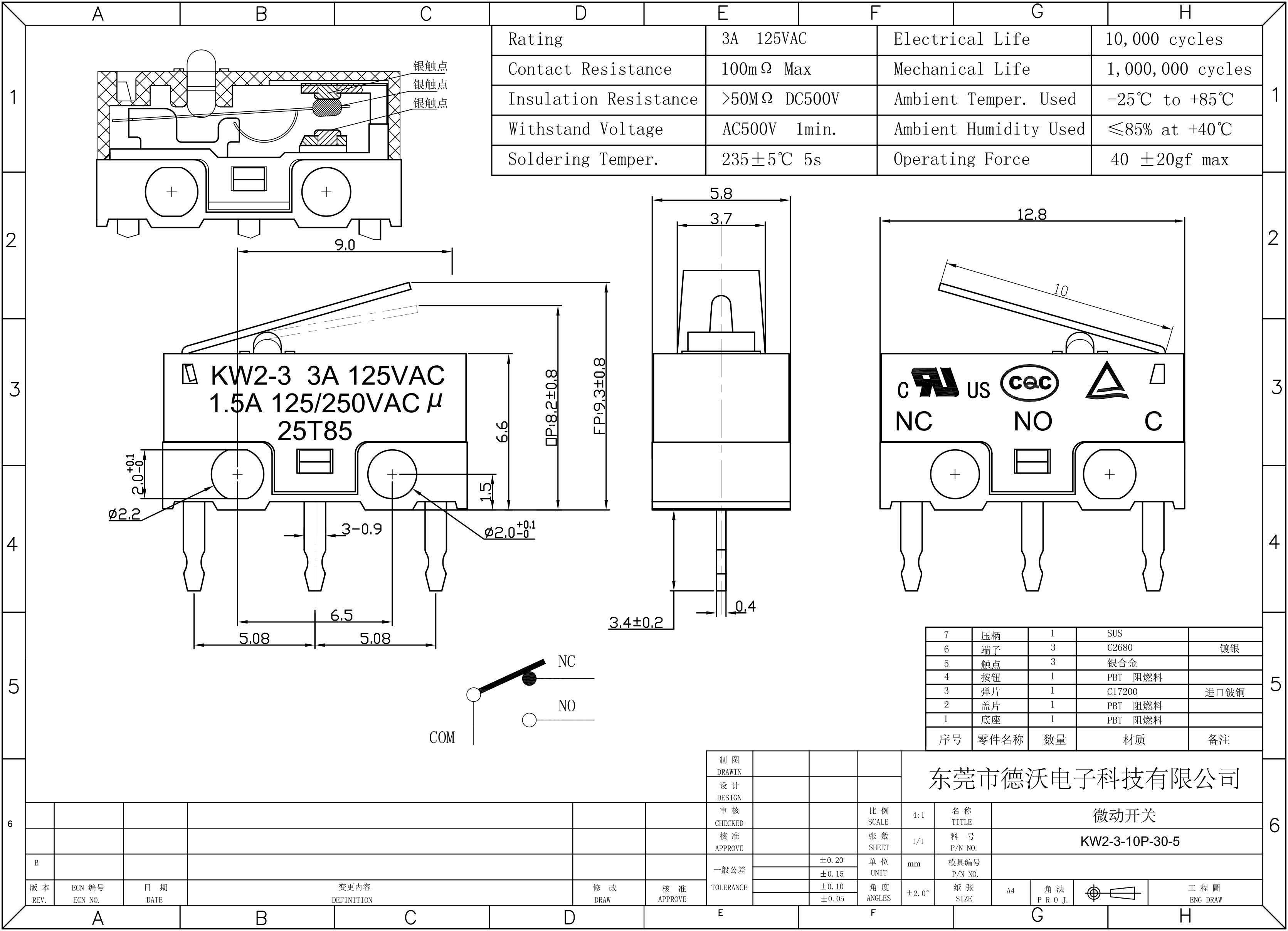 KW2-3-10P-30-5.小型微動開關圖紙下載