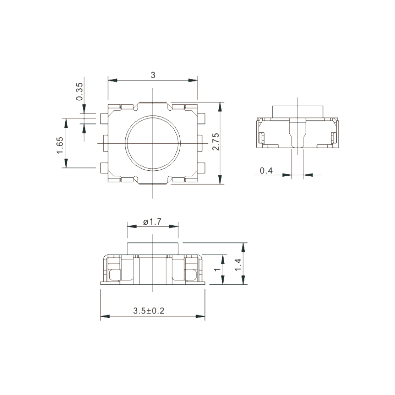 產品型號:TS-A031 額定負載:50mA ,12VDC 動作力(OF):160gf 、250gf 接觸電阻:100mΩ max 絕緣電阻:≥100MΩ 操作壽命:≥10萬次 操作行程:0.2±0.1mm 操作方向:直按 最小包裝:1000 pcs