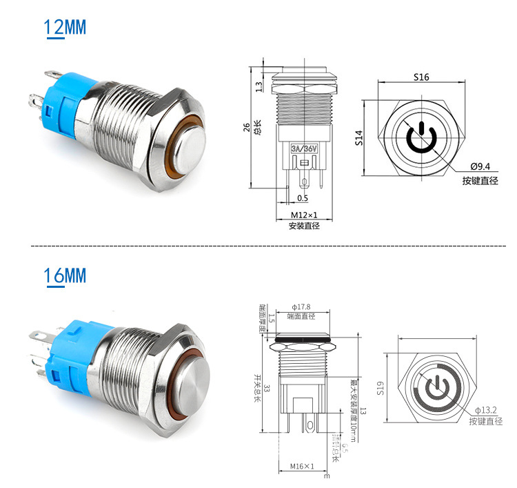 22mm 短款金屬按鈕開關