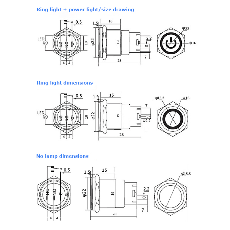 22mm 短款金屬按鈕開關